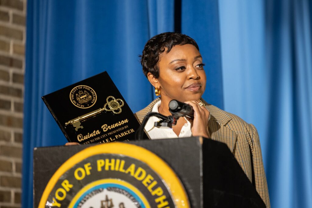 “My schooling brought so many great educators into my life, including Mrs. Abbott, who is here today and who I named my show after,” Brunson said. “The educators in our lives have a lasting impact on our students, particularly in Philadelphia.”